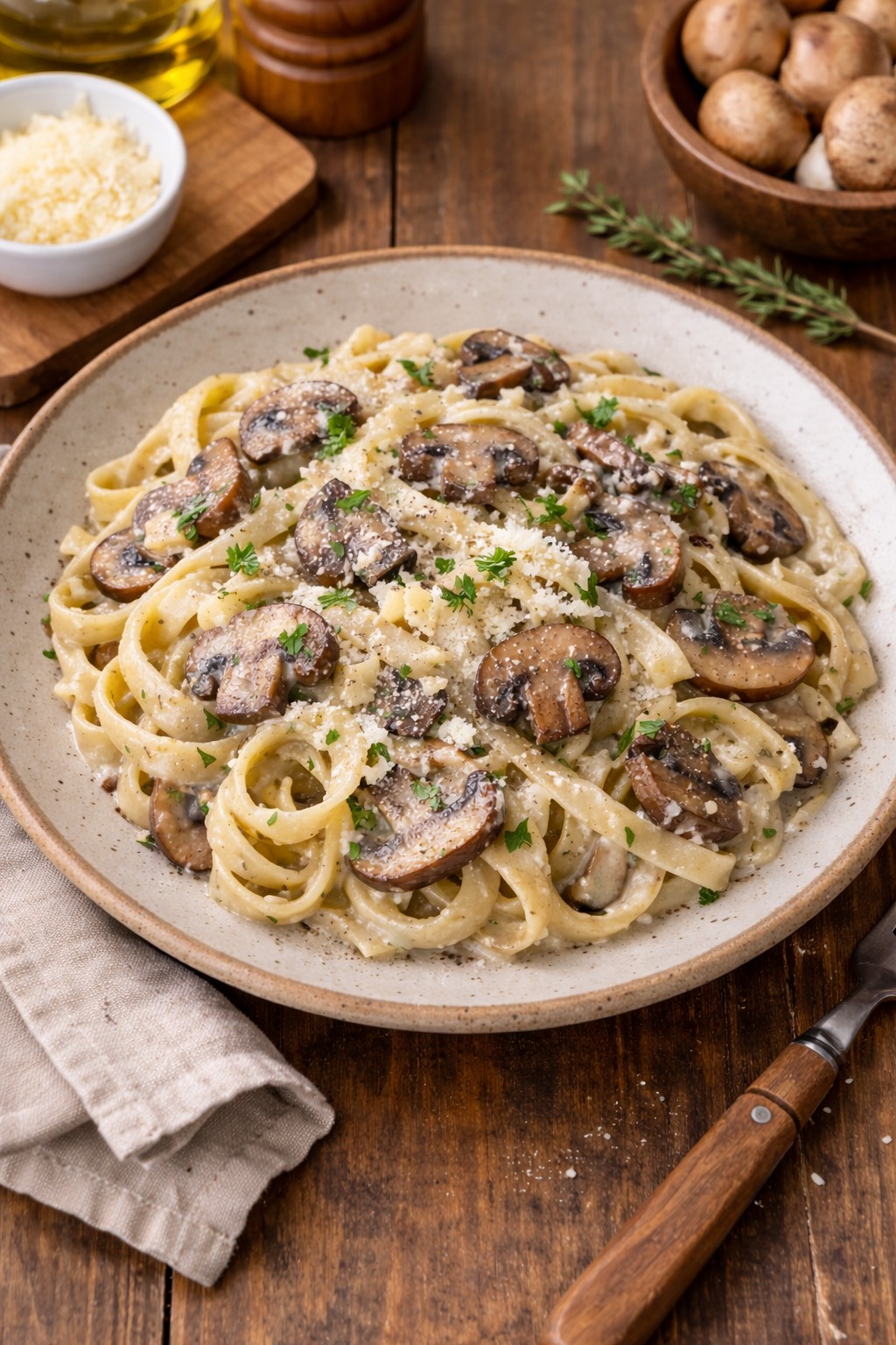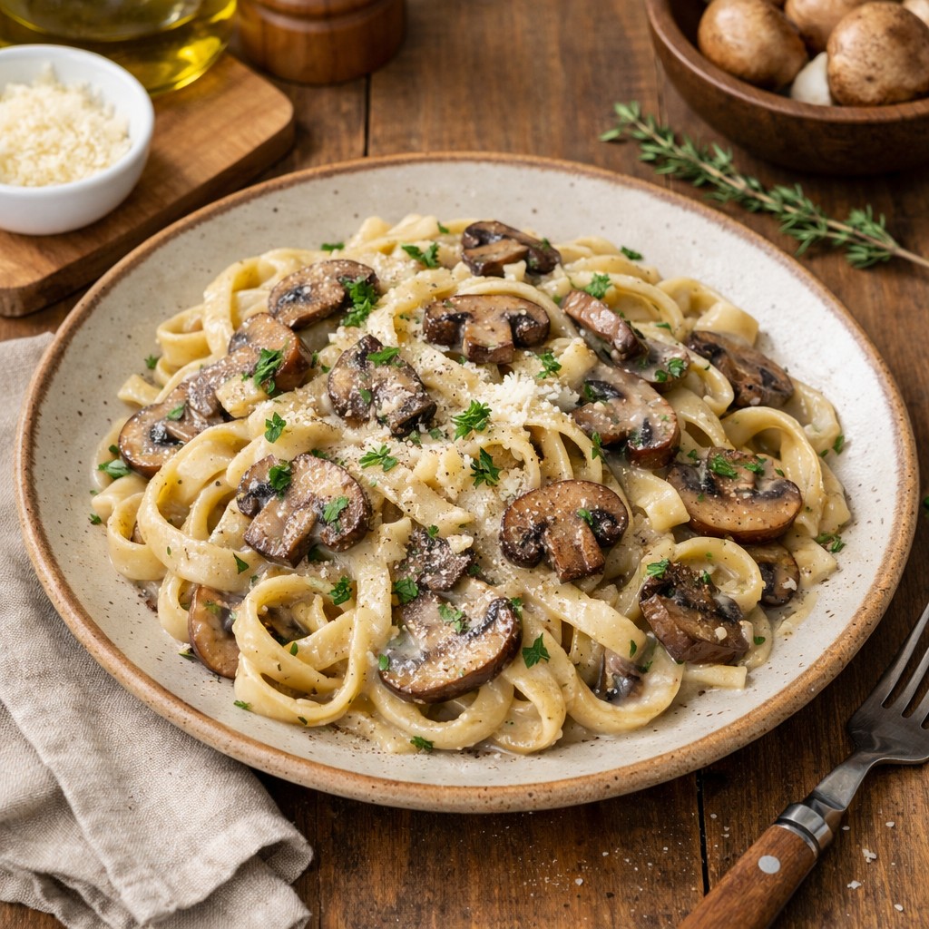 A rich and creamy organic mushroom pasta made without onion and garlic, perfect for Jain and Satvik diets. This comforting Italian-style dish is prepared with fresh organic mushrooms, herbs, and cream, delivering a smooth, flavorful experience in every bite. Ideal for a quick lunch or dinner, this recipe is both wholesome and indulgent.